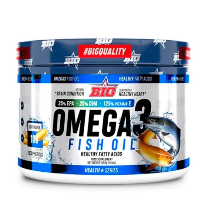 Omega-3 Fish Oil de BIG® es una excelente fuente de ácidos grasos Omega-3, pertenecientes al grupo denominado grasas saludables, con un contenido de 35% EPA, 25% DHA y un aporte extra de vitamina E.