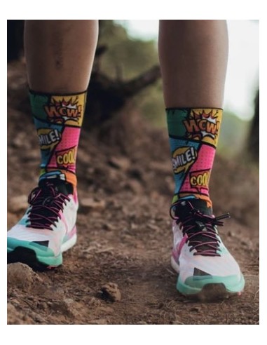 TECNOLOGÍA 360FLOW: Impresión 360º que permite diseños sin cortes en los laterales ni blanqueos al estirar el calcetín, con tintas base al agua que respetan el medio ambiente.