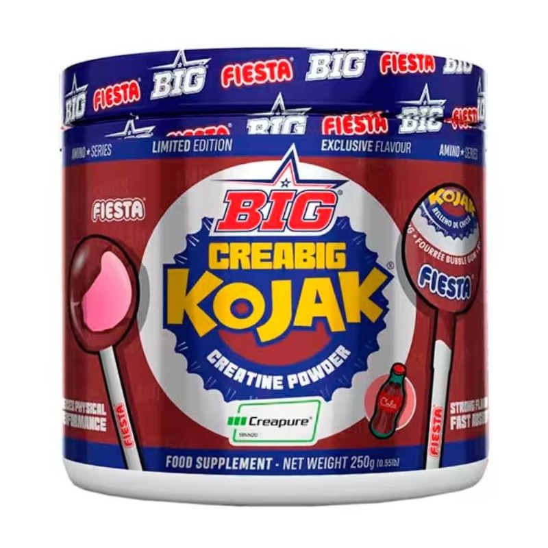 Una combinación de la mejor creatina monohidrato disponible en el mercado con la patente Creapure® con el increíble sabor del caramelo Kojak® Cola de Fiesta® y la experiencia de tu marca de suplementación deportiva de confianza Big®.