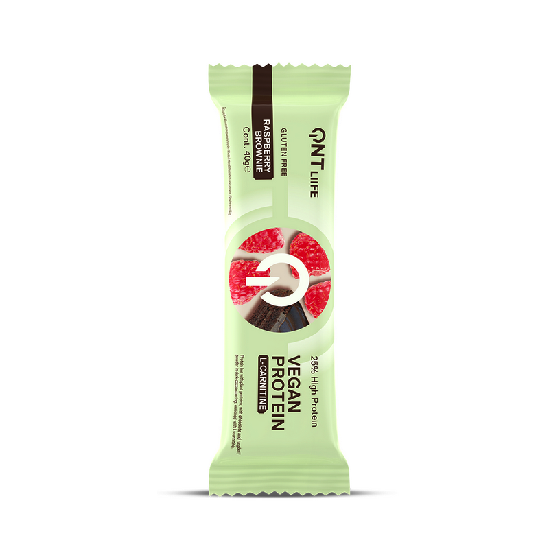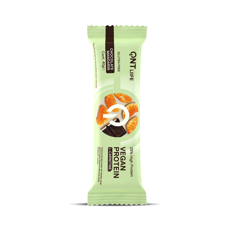 Barrita proteica vegana con l-carnitina es una deliciosa barrita proteica completamente vegana elaborada a base de proteínas de guisantes, arroz y soja.