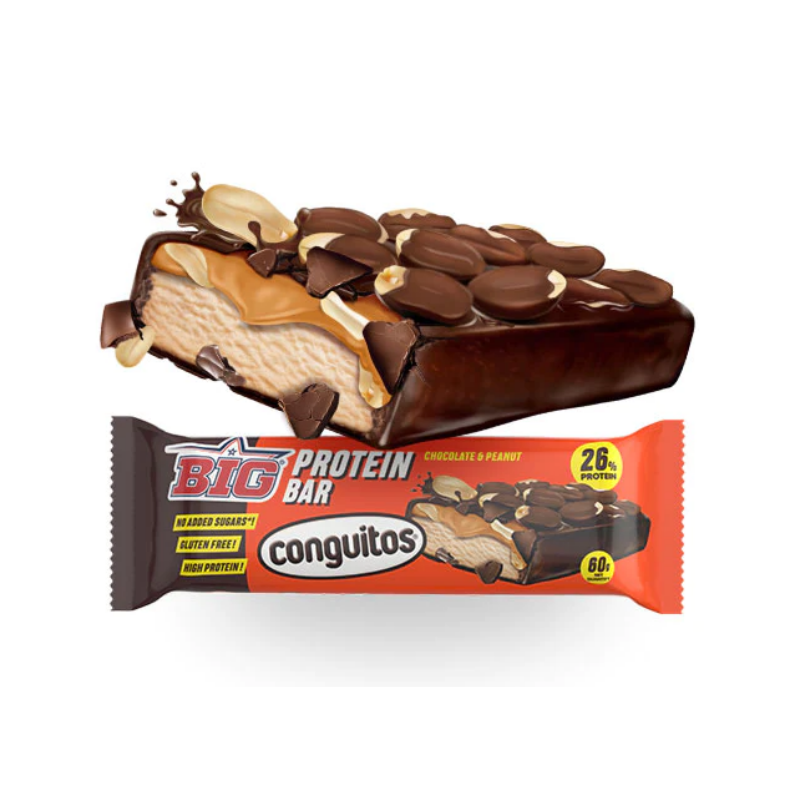 Redescubre todo el sabor de CONGUITOS® en esta nueva barrita sin azúcares añadidos, sin gluten y con un contenido de proteína de la mejor calidad del 26%. Además y como de costumbre, todos los productos BIG® poseen certificación GMP desde la trazabilidad de origen de las materias primas hasta la entrega a nuestros clientes.