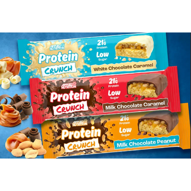 Todas las barritas Protein Crunch son suculentos snacks de tres capas con caramelo suave y una base crujiente cubierta de chocolate espeso.