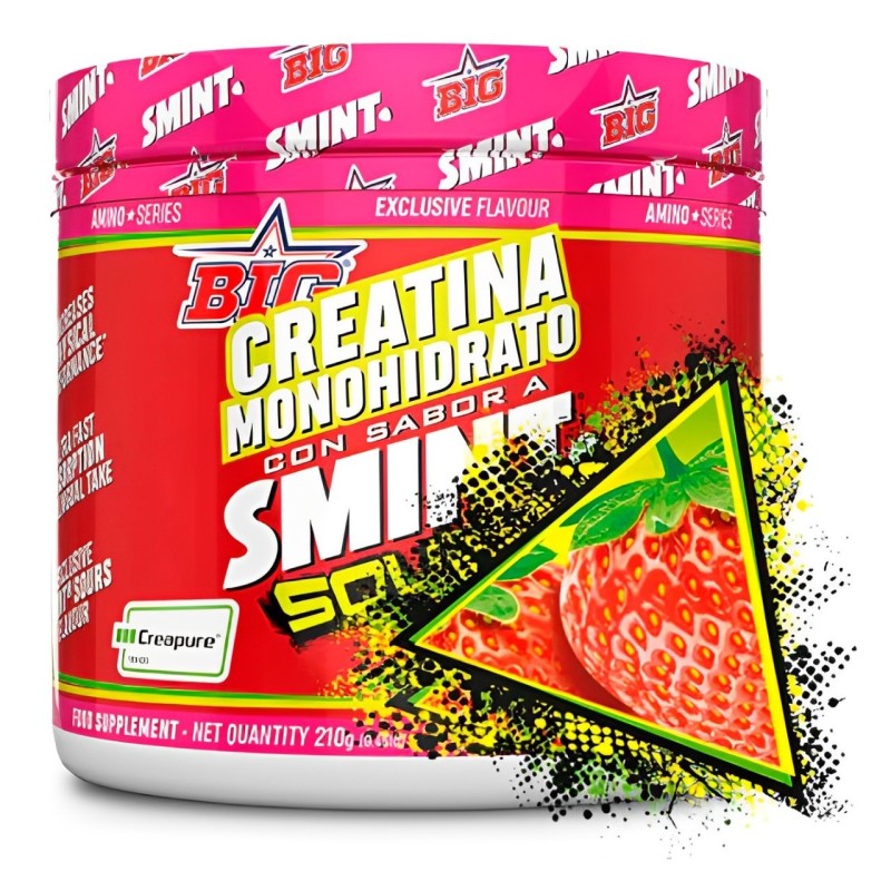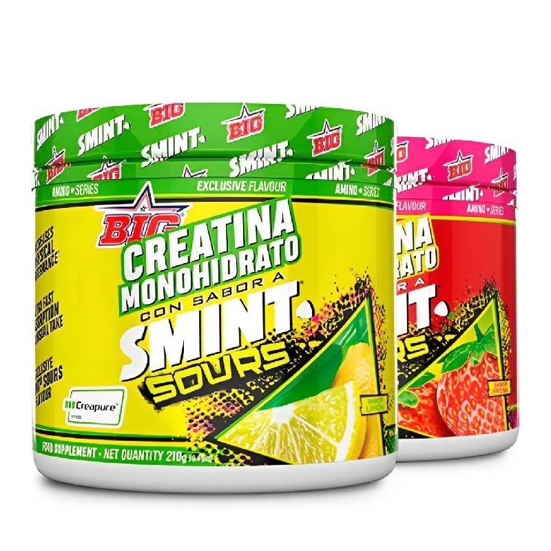 Creabig Creapure Smint® 210G (Big). La familia CREABIG crece con la nueva CREATINA MONOHIDRATO SMINT® SOURS edición exclusiva Smint® con Creapure®, disponible en 2 increíbles sabores: Smint® Sours LEMON y Smint® Sours STRAWBERRY, para que elijas tu favorito y te pases al lado más ácido de BIG®.