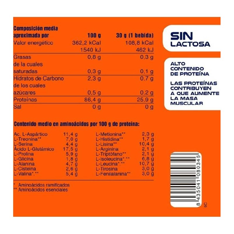 Complemento alimenticio en polvo formulado a base de proteína aislada de suero de leche. Su fórmula ha sido sometida a la técnica de microfiltración de flujo cruzado para asegurar una asimilación óptima de la proteína por parte del organismo.