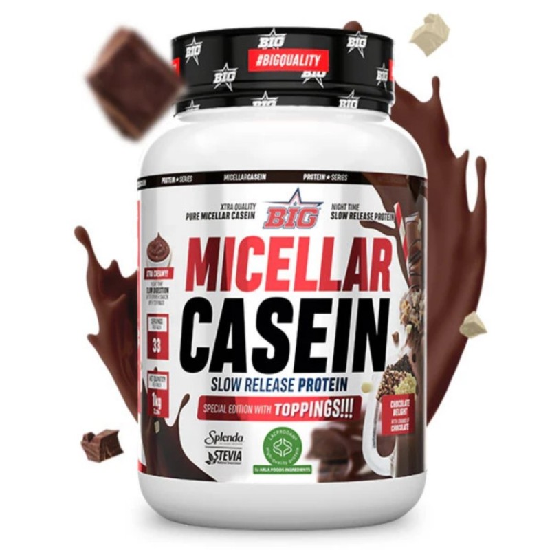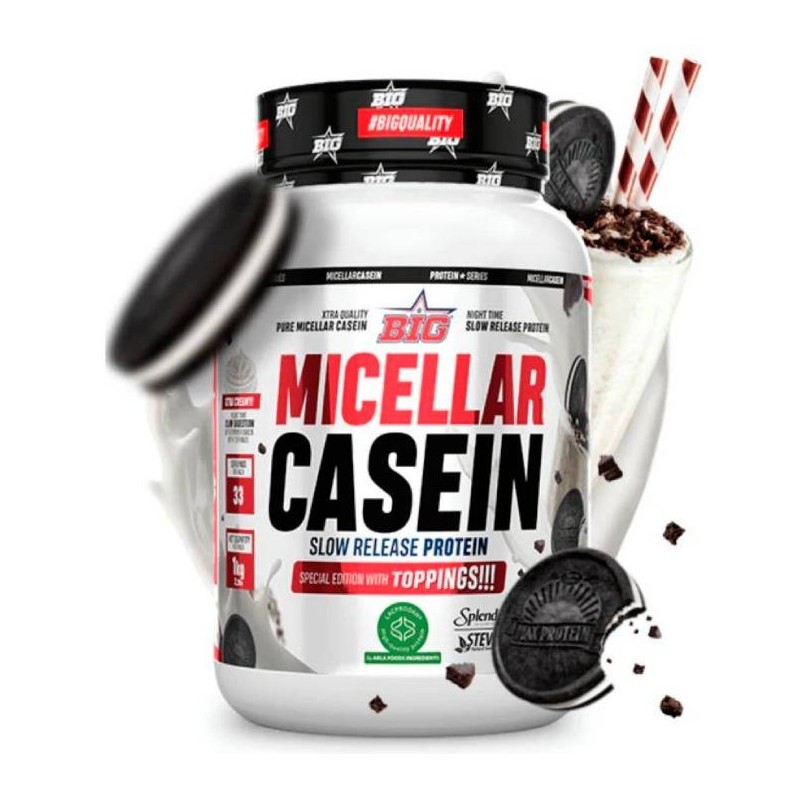 MICELLAR CASEIN de BIG® contiene el porcentaje más elevado de péptidos bioactivos (entre un 85-92% de proteína) y niveles muy bajos de grasa y lactosa. Las micelas de la proteína se digieren lentamente en el estómago, ampliando la liberación de sus aminoácidos a periodos superiores a 7 horas. Esta característica le confiere la capacidad de estimular la síntesis proteica y combatir el catabolismo posterior a un entrenamiento intenso durante un largo periodo de tiempo.