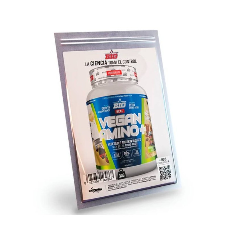 Primer aislado de proteína vegetal 90% enriquecido con un 10% extra de aminoácidos esenciales en la proporción justa para que ninguno de ellos sea limitante, lo que lo convierte en un suplemento que ofrece virtualmente la misma calidad que una proteína tradicional de origen animal, como la Whey Protein, la cual es el Gold Standard de las proteínas.