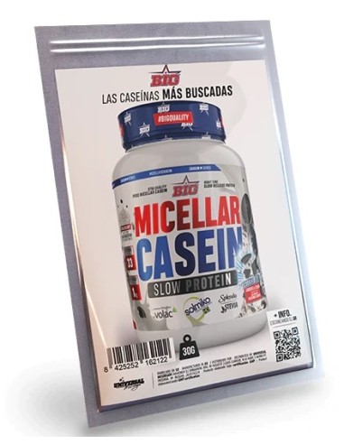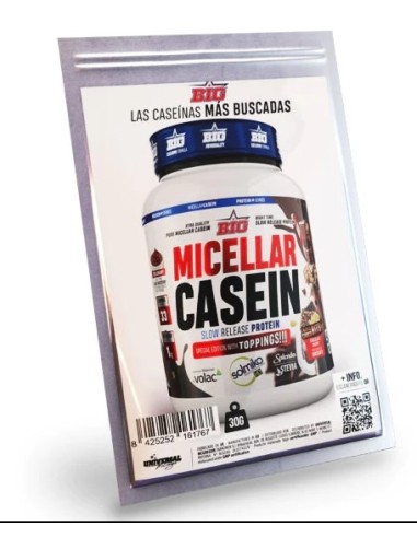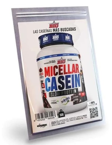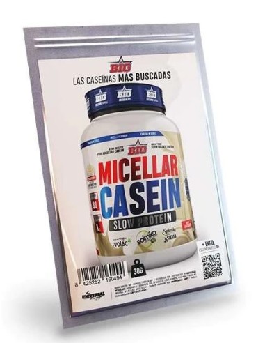 MICELLAR CASEIN de BIG® contiene el porcentaje más elevado de péptidos bioactivos (entre un 85-92% de proteína) y niveles muy bajos de grasa y lactosa. Las micelas de la proteína se digieren lentamente en el estómago, ampliando la liberación de sus aminoácidos a periodos superiores a 7 horas. Esta característica le confiere la capacidad de estimular la síntesis proteica y combatir el catabolismo posterior a un entrenamiento intenso durante un largo periodo de tiempo.