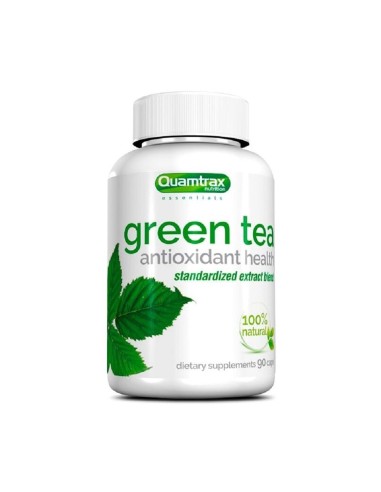 GREEN TEA (Quamtrax). Extracto herbal con una importante función antioxidante para evitar el envejecimiento temprano y la oxidación celular. Potente efecto diurético para facilitar la pérdida de líquidos, así como de grasa gracias a su ligero porcentaje de cafeína. Aumenta la concentración, la fatiga mental y reduce la somnolencia, lo cual nos es ideal para épocas de estudio o entrenamiento intenso. Ligero efecto vasodilatador para mejorar la congestión muscular y disminuir la presión arterial.