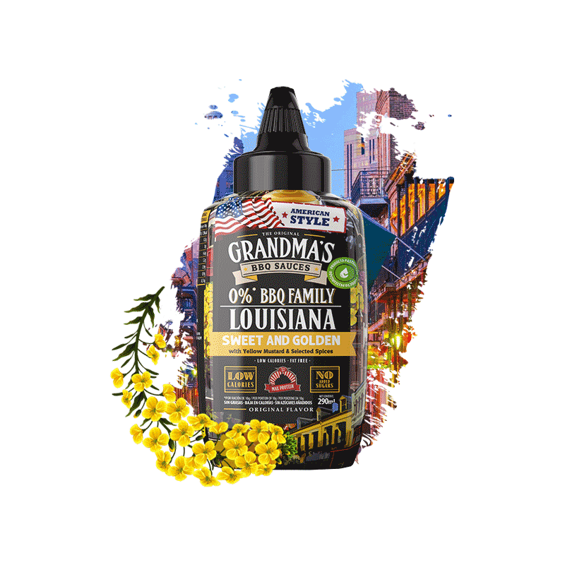 En nuestra Salsa BBQ Louisiana Style, hemos querido unir la esencia de cada uno de esos platos resaltando las notas de sabor de los ingredientes principales: la mostaza amarilla presente en todas las salsas de sus platos más típicos y las especias de origen cajún y criollo cuidadosamente seleccionadas, para conservar el lado más dulce de nuestra salsa.