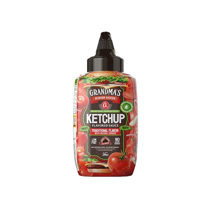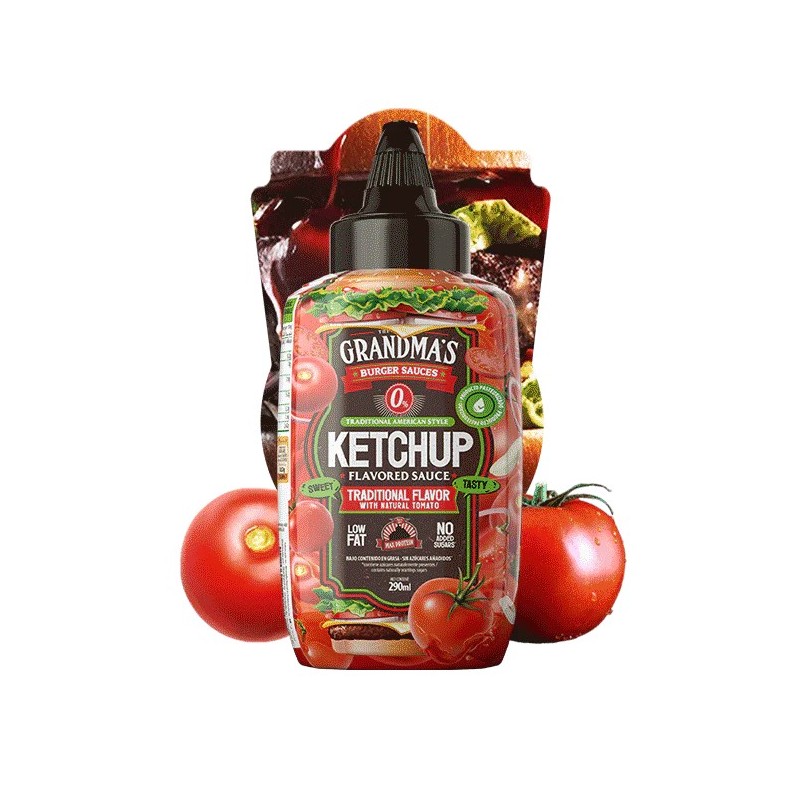 ¡La familia Grandma's sauces vuelve a crecer con la nueva salsa Kétchup Traditional Flavor, muy baja en calorías, sin azúcares añadidos, pero con todo el sabor del mejor tomate natural! Disfruta ya de la nueva salsa Kétchup Traditional Flavor de Grandma's sauces en tus hamburguesas, patatas o sobre cualquier complemento con el toque dulce y sabroso de la auténtica tradición americana.