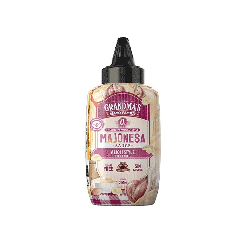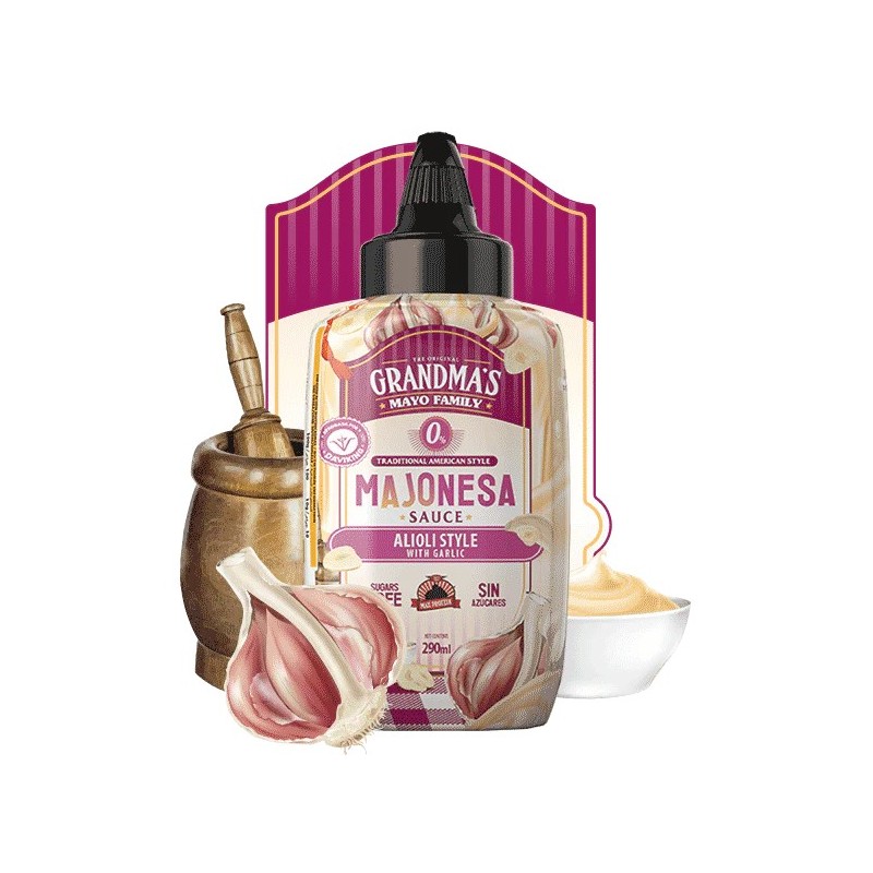 ¡Y ahora ya puedes disfrutar de todo el sabor de nuestra Zeronesa, pero con el auténtico toque Mediterráneo del alioli con un sabroso y aromático toque de ajo! Disfruta ya de la nueva salsa Grandma´s Majonesa al estilo Alioli con ajo en tus hamburguesas, patatas o sobre cualquier complemento con el toque cremoso de las mejores salsas MAYOS.