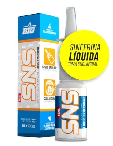 REAL SNS es un suplemento de psinefrina líquida en un cómodo formato con pulverizador, que se administra mediante pulsación en apenas unos segundos.