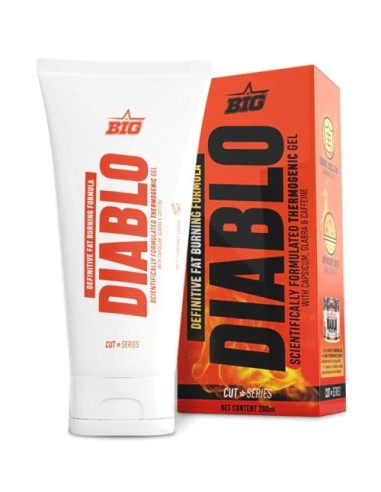 DIABLO THERMOGENIC GEL de BIG® es una nueva crema termogénica reductora de uso tópico con efecto anticelulítico especialmente formulada para actuar sobre aquellas zonas conflictivas que presentan restos de grasa rebelde de manera directa.