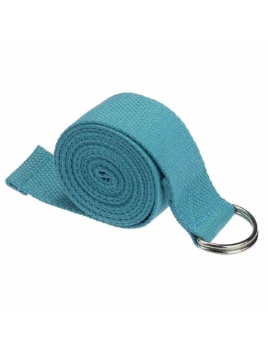 Cinturón de yoga en azul claro que te ayudará a llegar a puntos donde no llegas normalmente, con el objetivo de estabilizar posturas. Es una herramienta perfecta para hacer yoga. Tirante con enganche para conseguir mayor flexibilidad.
